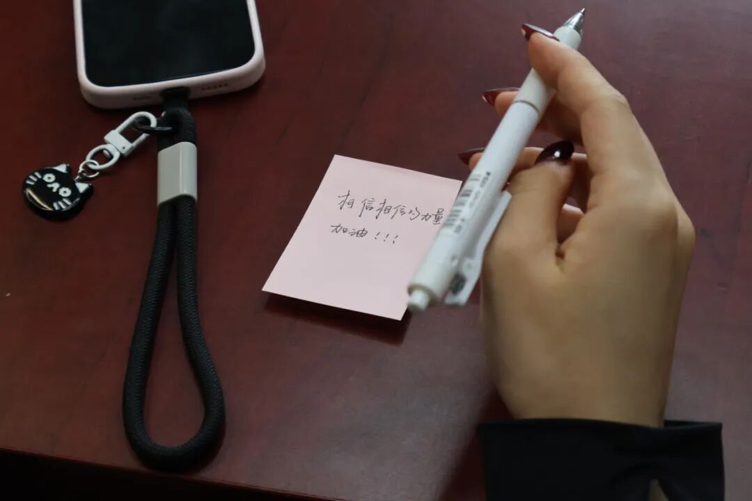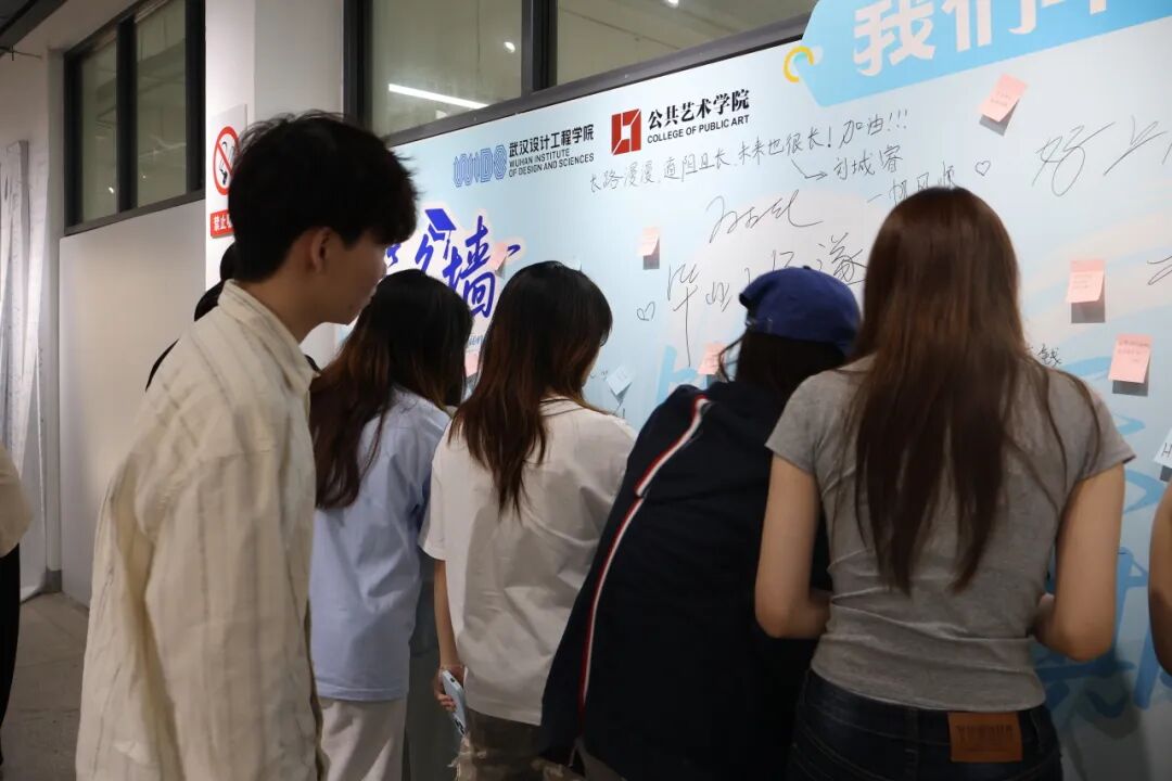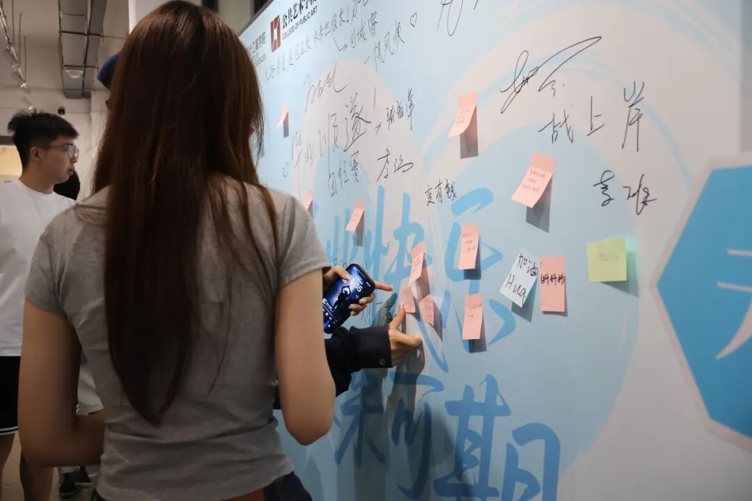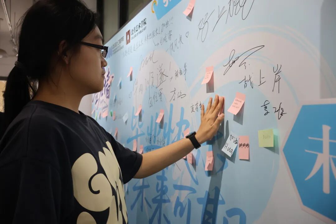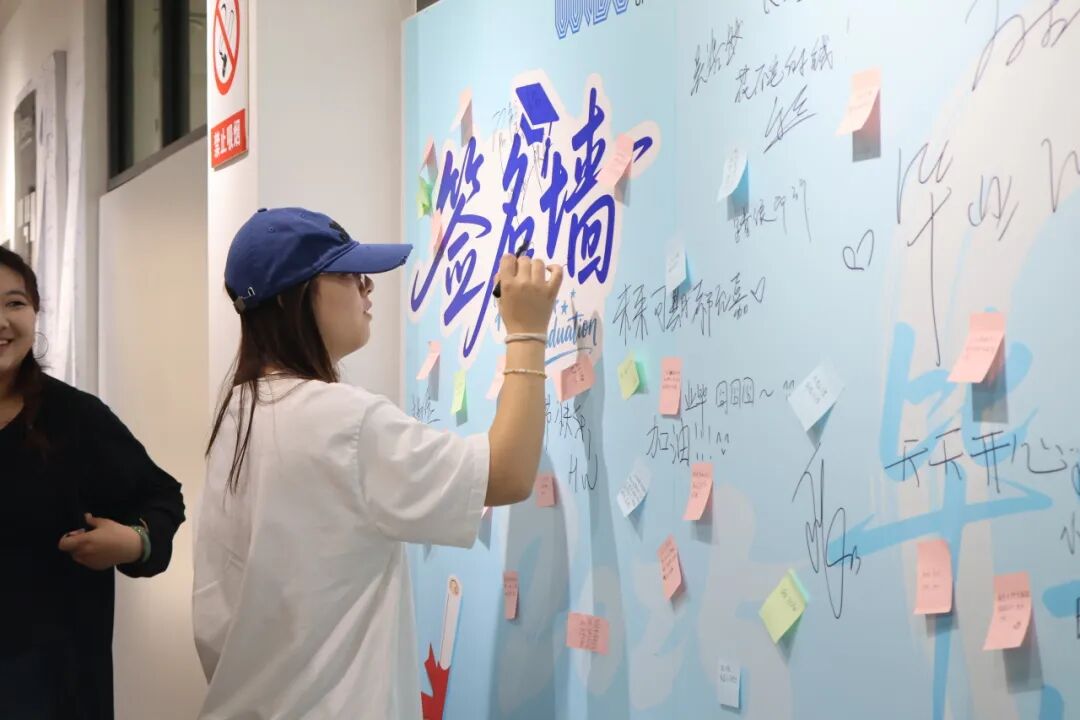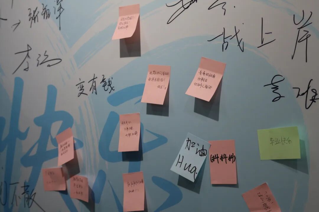 随后,师生们将写满祝福与愿望的便利贴贴满签名墙: