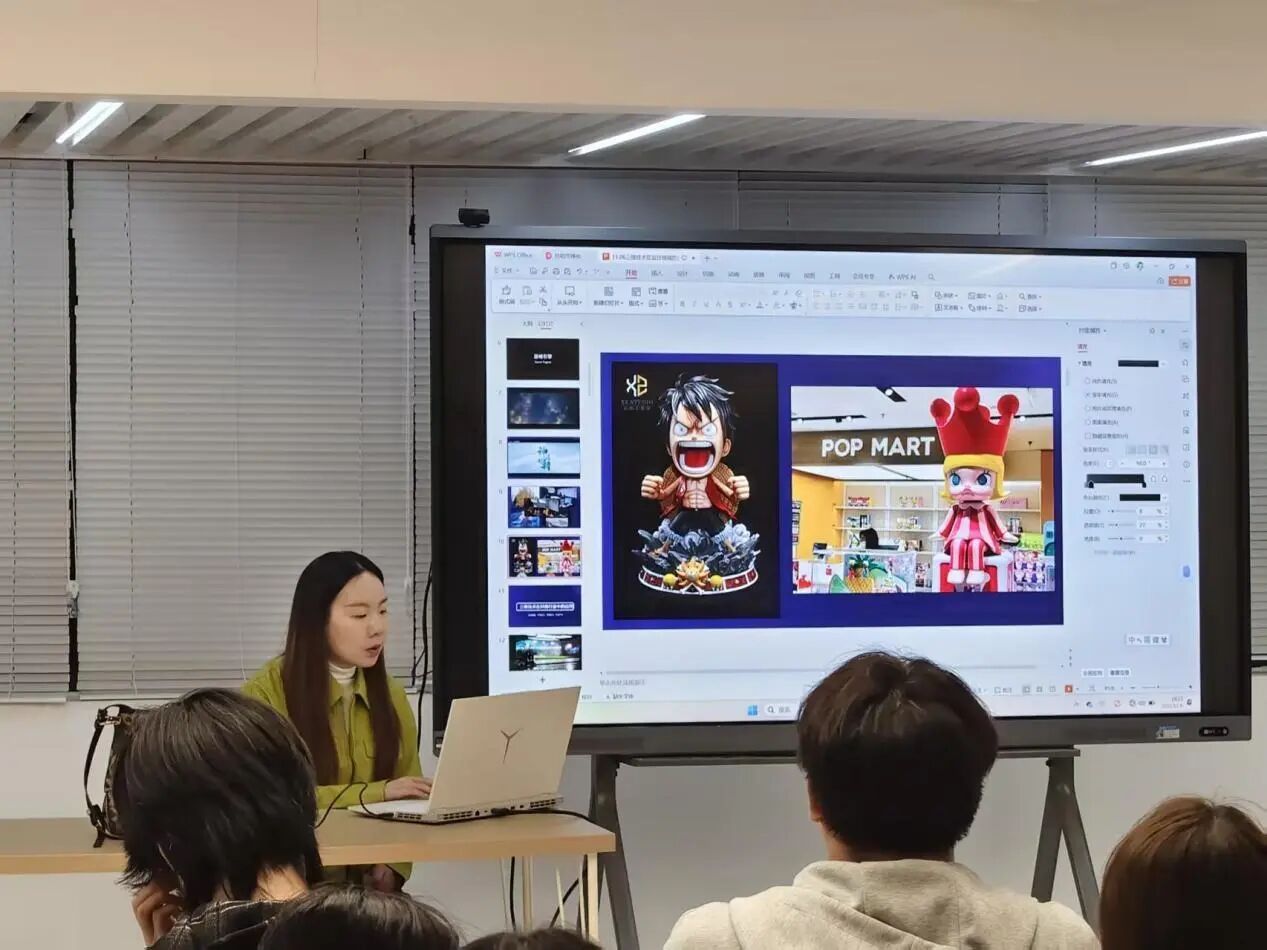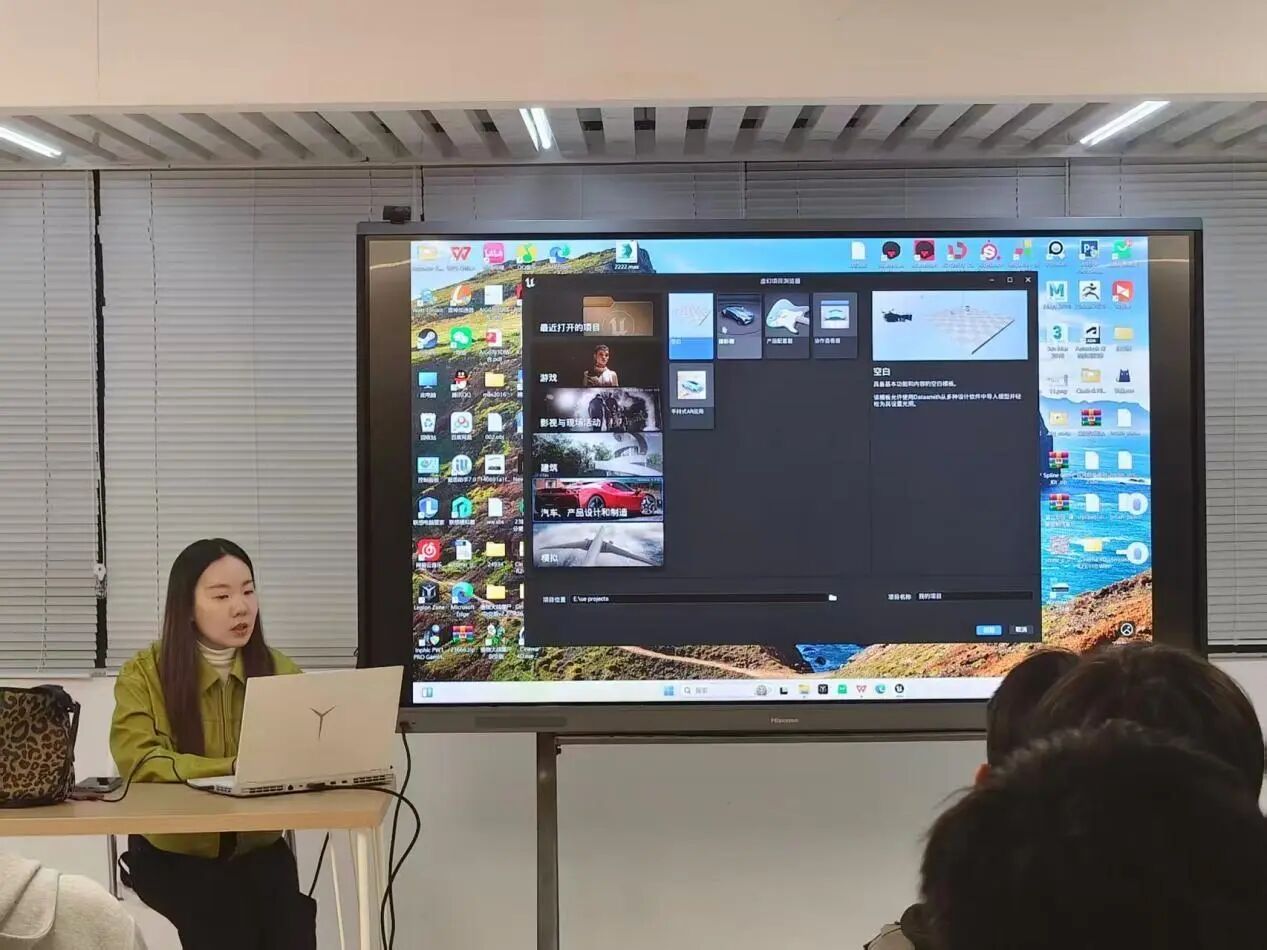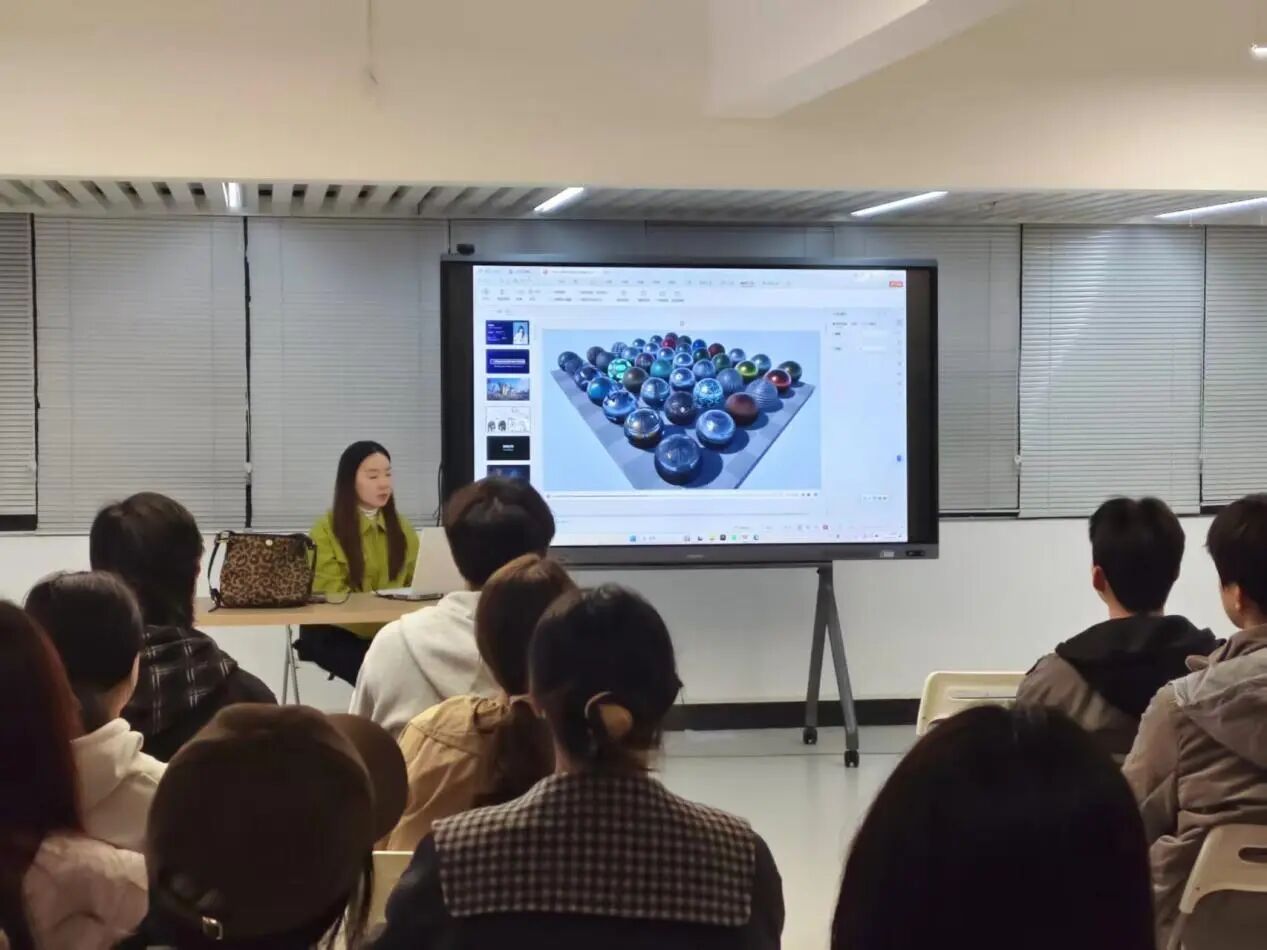 在“工具与作品”分享环节,童老师展现了她的专业与细致。她系统地梳理了当前主流的三维建模软件生态,从开源免费、对新手极度友好的Blender,到功能强大、在游戏和影视行业占据半壁江山的3ds Max,再到以高精度曲面建模见长、广泛应用于工业设计的Rhino,她都一一做了介绍。她还特别对比了它们的优劣和适用场景:“如果你是学生,预算有限,想快速出效果,Blender是首选;但如果你的目标是进入一线游戏公司,那么3ds Max和Maya是必须掌握的硬技能。”随后,她展示了湖北美术学院优秀学生的三维作品案例:有同学用Blender还原了微缩景观中的古风庭院,飞檐斗拱、砖瓦纹理栩栩如生;有同学则在3ds Max中创建了充满赛博朋克风格的未来都市,霓虹光影与机械结构相得益彰。这些鲜活的案例,让同学们直观地感受到“技术是创意的放大器”这一真理。