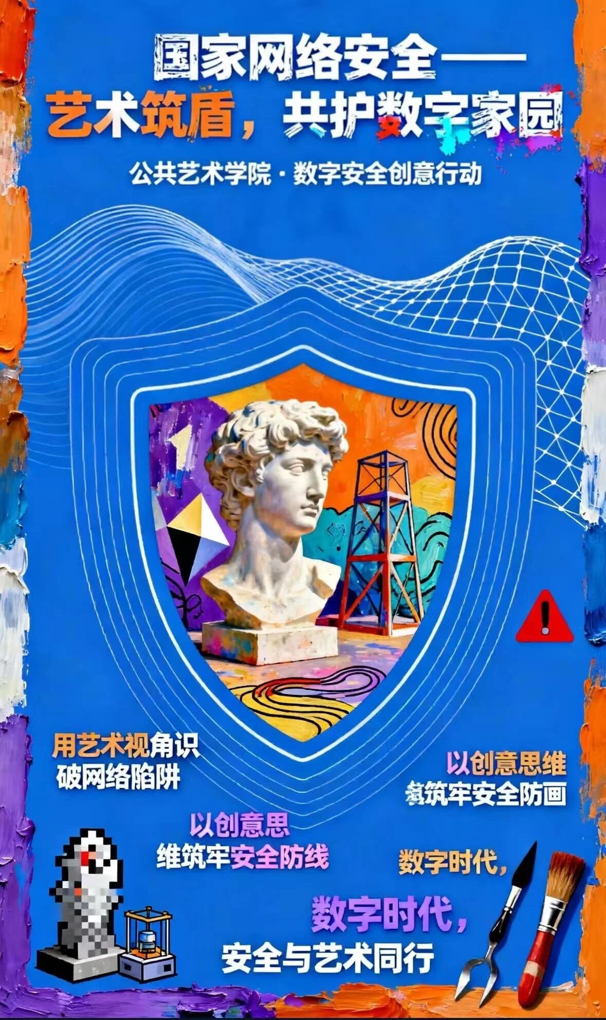 同时,学院结合自身专业特色,动员学生参加学院“国家网络安全海报设计”活动。用设计的力量,为抽象的网络安全概念注入灵魂。让严肃的警示变得生动,让防护的意识深入人心。