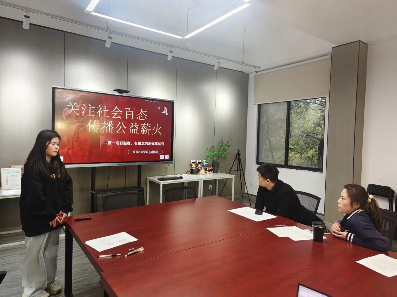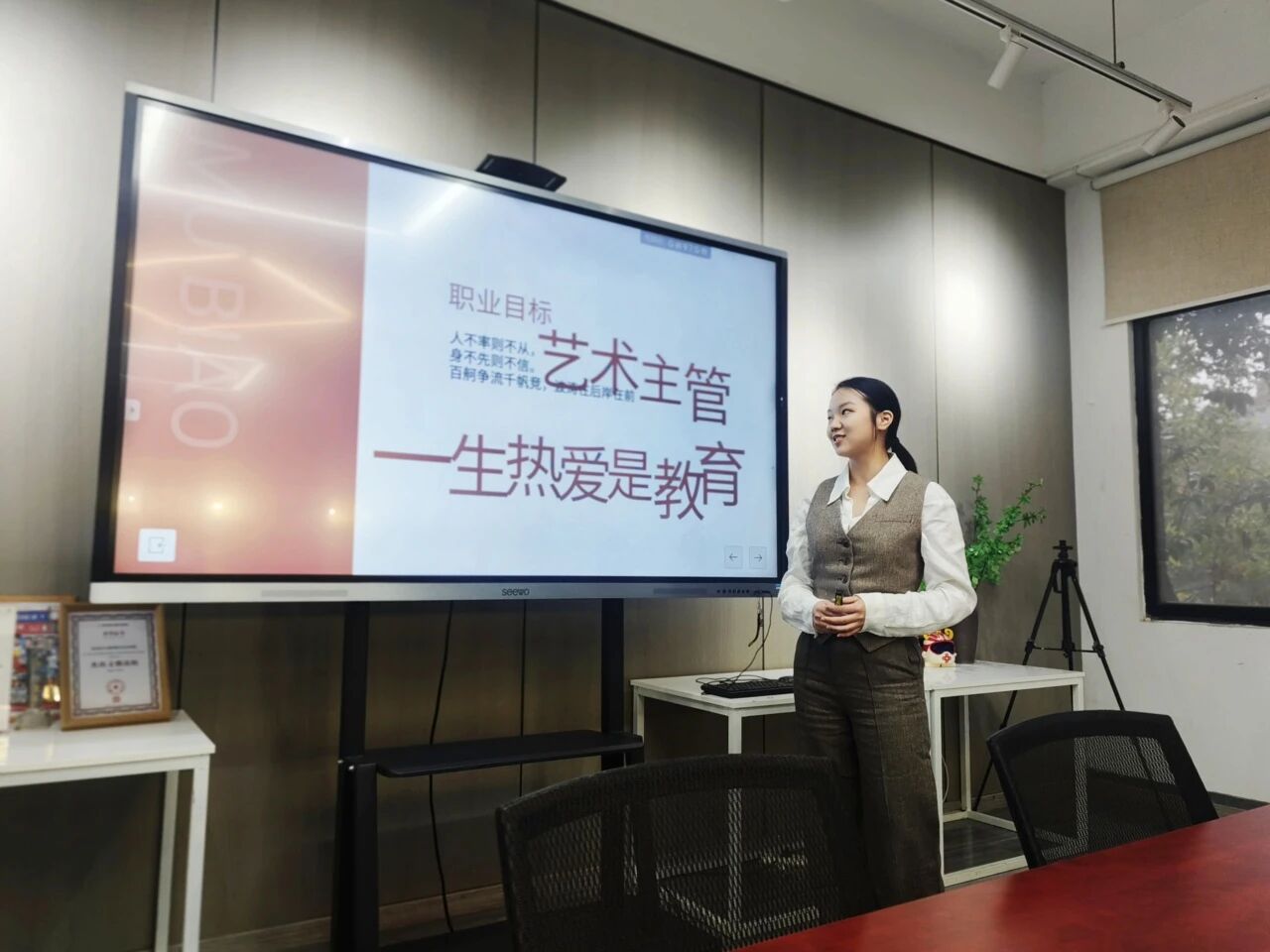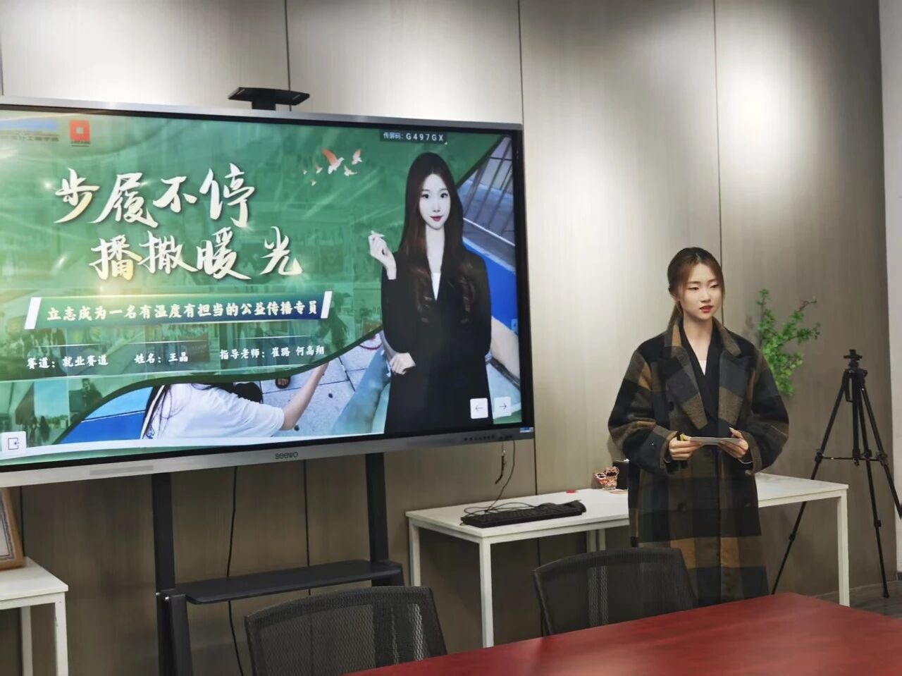 选手们通过PPT展示、现场答辩的形式,从自我认知、职业分析、目标确立、路径规划、评估调整等方面,全面阐述了自己的职业规划。有的选手以醒狮文化传承为己任,计划成为“醒狮技艺+现代设计”的醒狮传承人,让这项传统民俗艺术在视觉表达、场景应用上焕发新活力;有的选手立志做公益传播专员,打算用视觉设计、短视频等艺术形式,为支援贫困山区的志愿者和老师应援发声;有的选手精准锚定新媒体运营赛道,聚焦艺术垂直领域,构建起“内容策划-视觉呈现-流量转化”的职业发展思路;还有的选手心怀教育热忱,规划成为乡村支教老师,将公共艺术课程带到乡村课堂。他们从容自信的表达、逻辑清晰的规划,赢得了现场评委和观众的阵阵掌声。